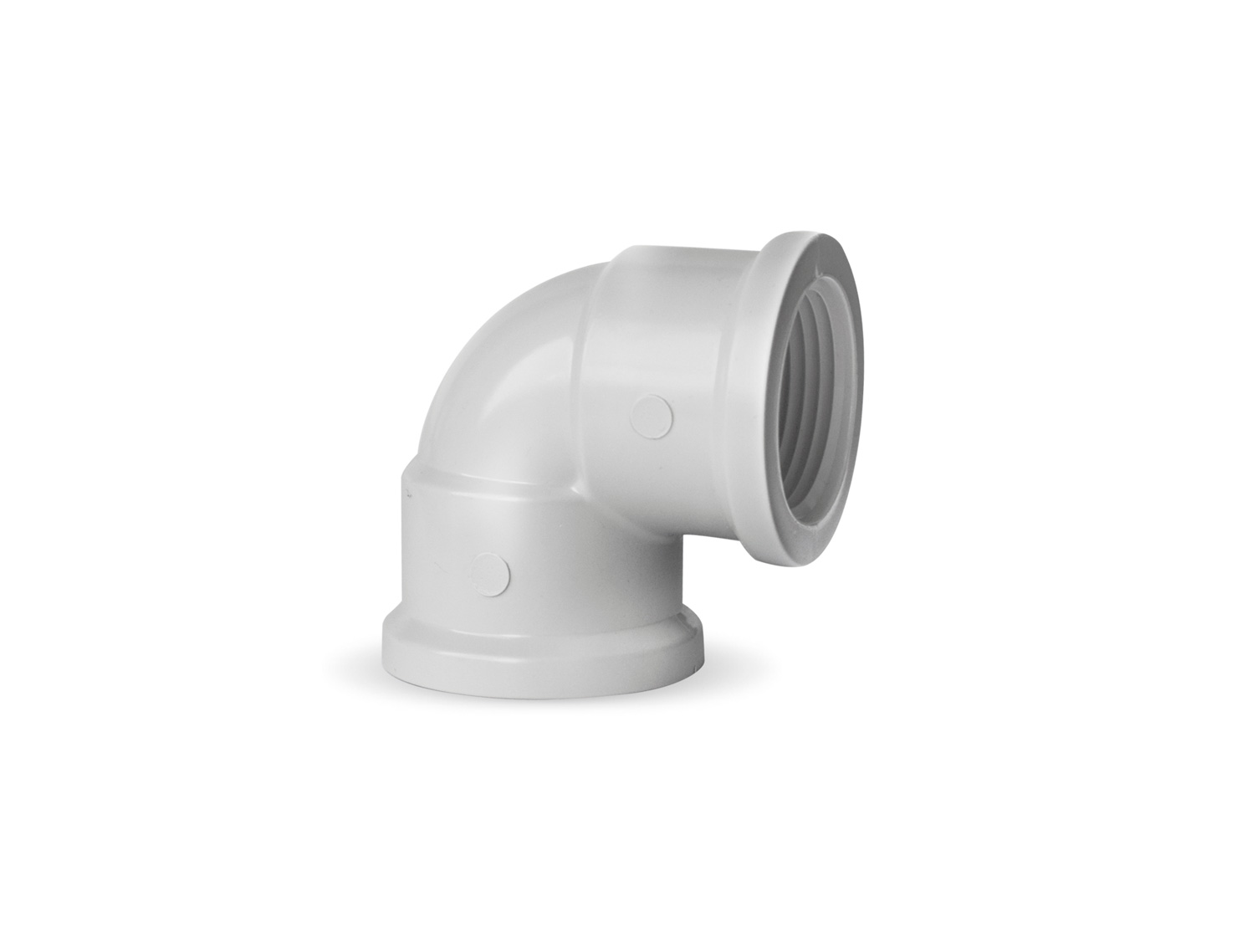 Codo de PVC con rosca para sistema de agua x 90° grados.